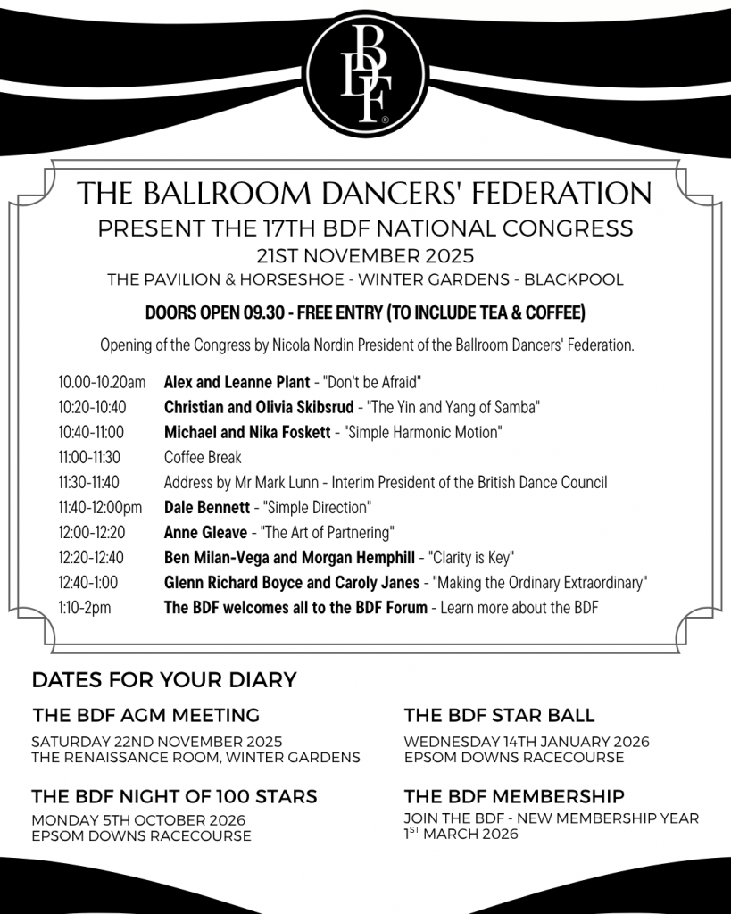 To be held in The PAVILION, Winter Gardens, Blackpool during the British National Dance Championships